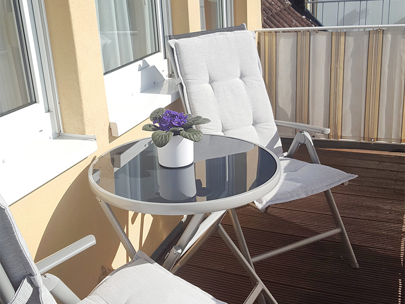 Auf unserem Südbalkon genießen Sie auch hier wieder einen herrlichen Ausblick auf den Bodensee und das Alpenpanorama.