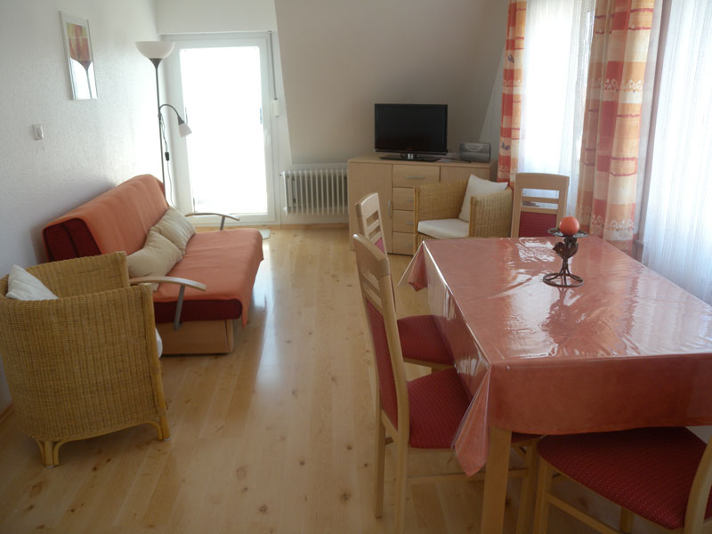 Unsere Wohnung 3 befindet sich ebenfalls im 2. OG und verfügt über einen freundlichen Wohnbereich mit einer Küchenzeile mit Spülmaschine.